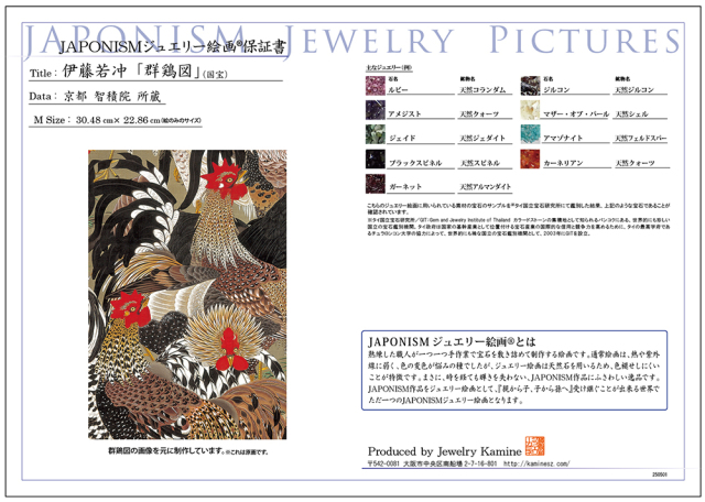 | 製品名: | ジュエリー絵画 伊藤若冲 動植綵絵『群鶏図』 |