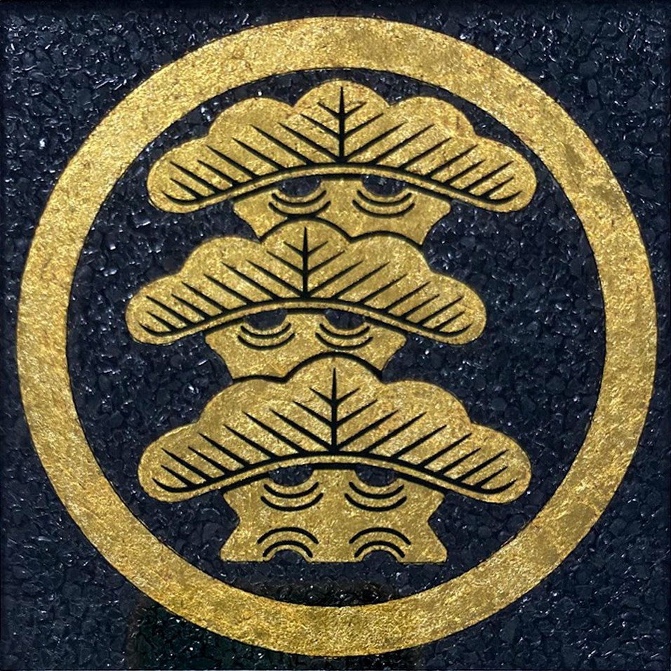 ジュエリー絵画として、『親から子、子から孫へ』受け継ぐことが出来る世界でただ一つの『丸に左三階松』家紋ジュエリー絵画となります。