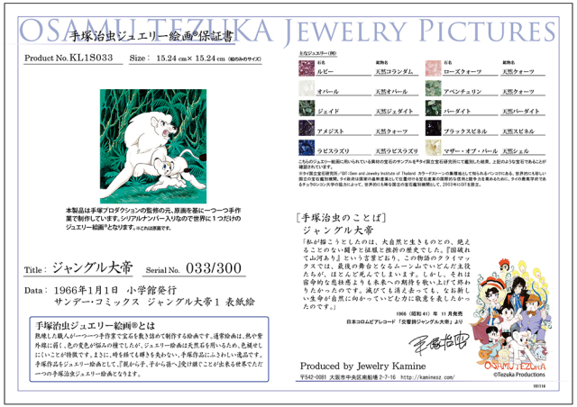 | 製品名: | ジュエリー絵画『ジャングル大帝』1 |