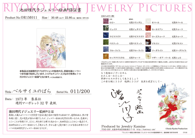 「池田理代子プロダクション」の正式な監修を受けたことを示す作品保証書が付属いたします。