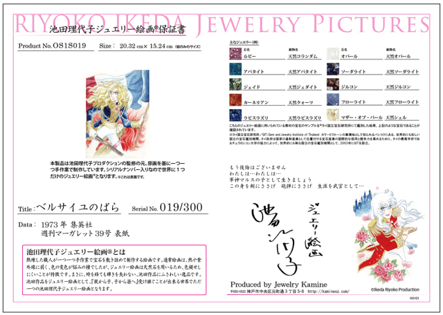 「池田理代子プロダクション」の正式な監修を受けたことを示す作品保証書が付属いたします。