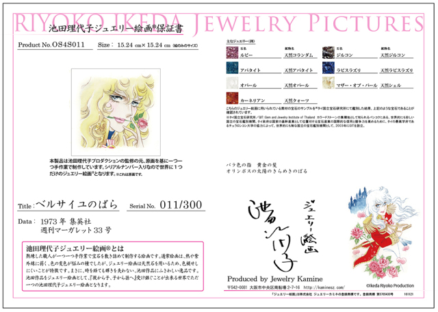 「池田理代子プロダクション」の正式な監修を受けたことを示す作品保証書が付属いたします。